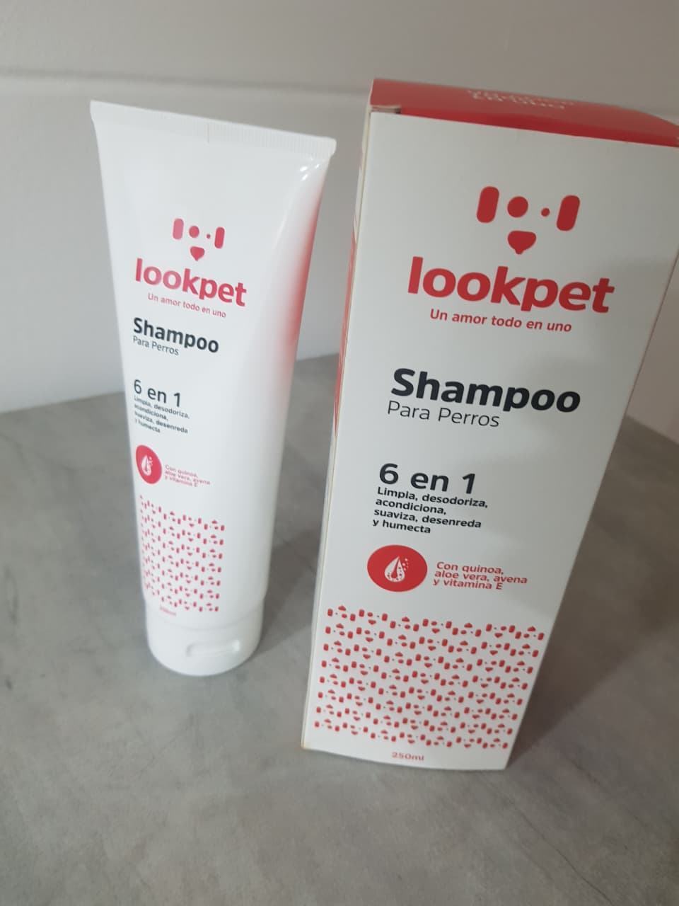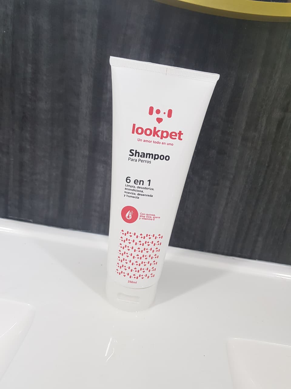 El Shampoo 6 en 1 para perros Lookpet ofrece un cuidado completo en un solo producto: limpia, desodoriza, acondiciona, suaviza, desenreda y humecta el pelaje de tu perro. Su fórmula con quinoa, avena, aloe vera y vitamina E fortalece, calma e hidrata, dejando el manto brillante y fácil de peinar. Diseñado para todas las razas y edades, convierte cada baño en un momento de bienestar y conexión.